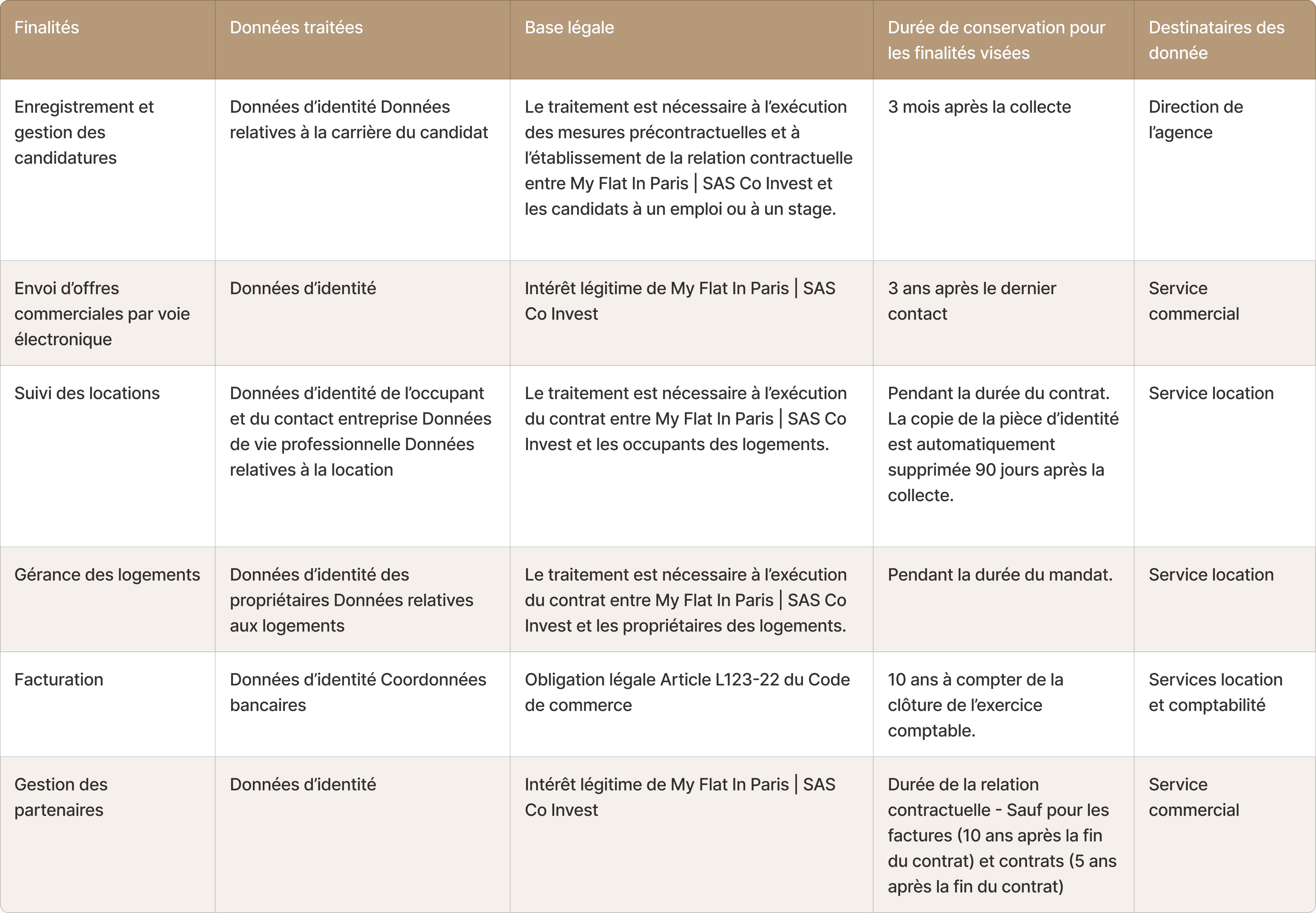 My Flat In Paris | SAS Co Invest is required to process the following categories of data: